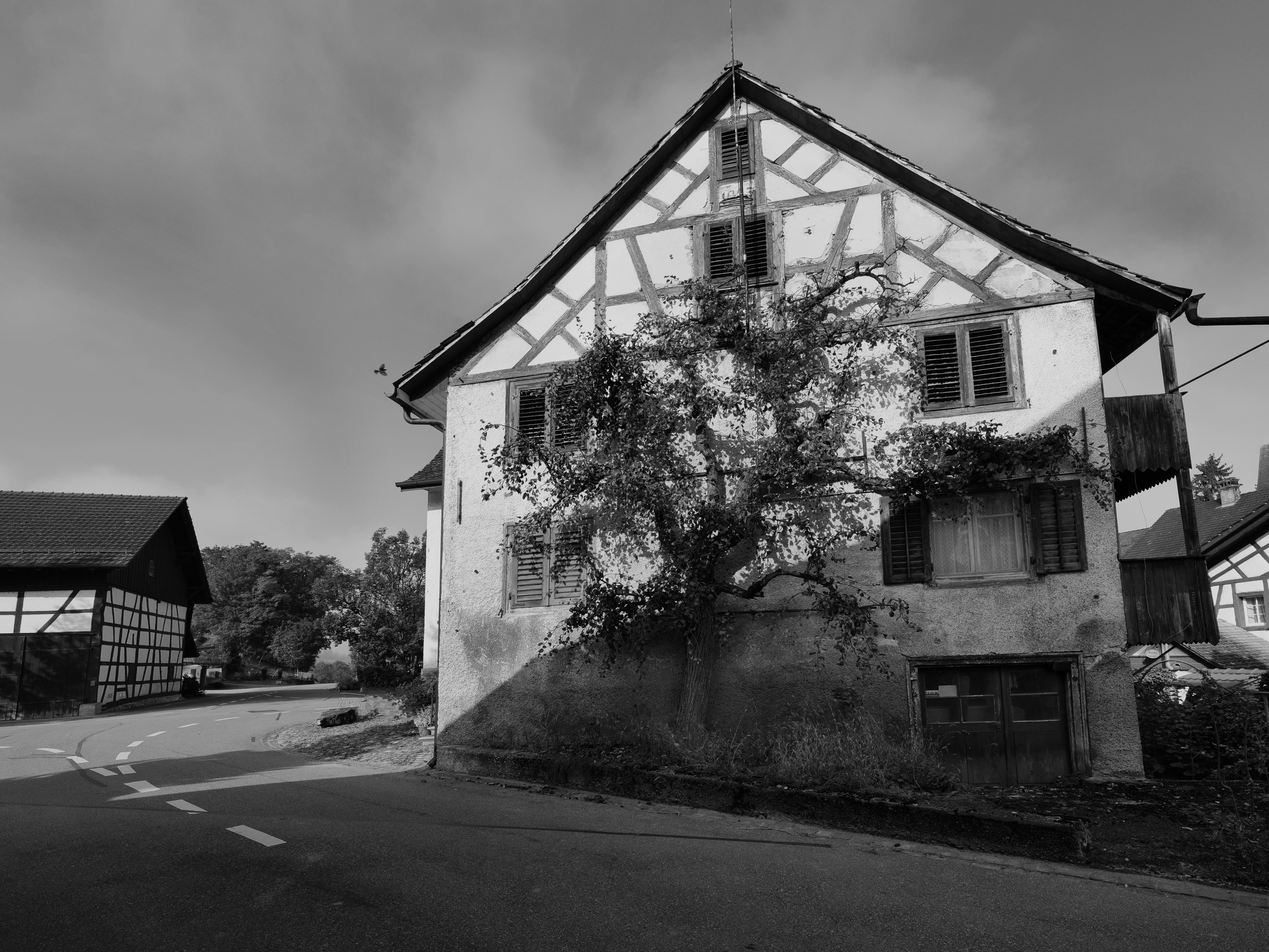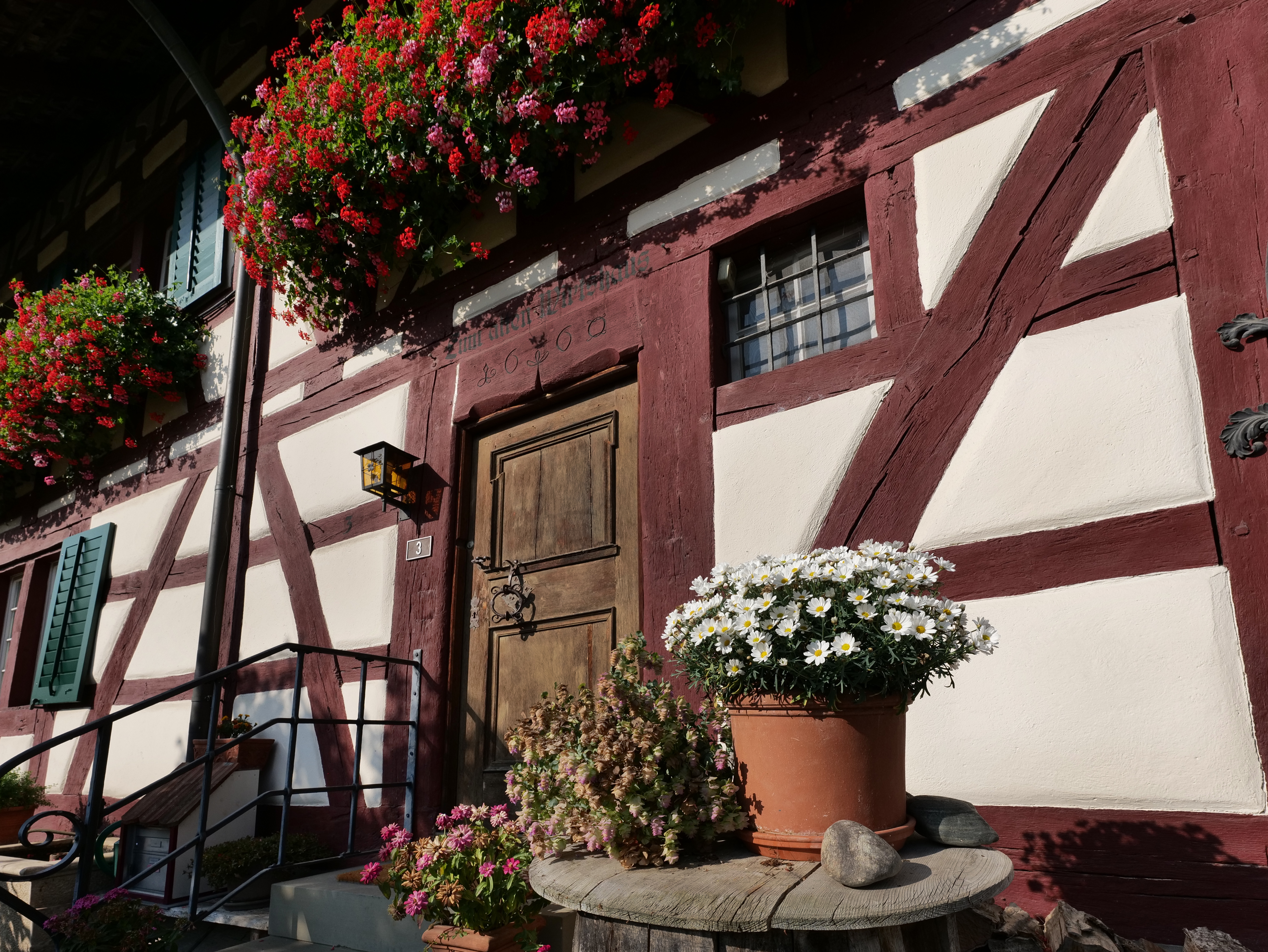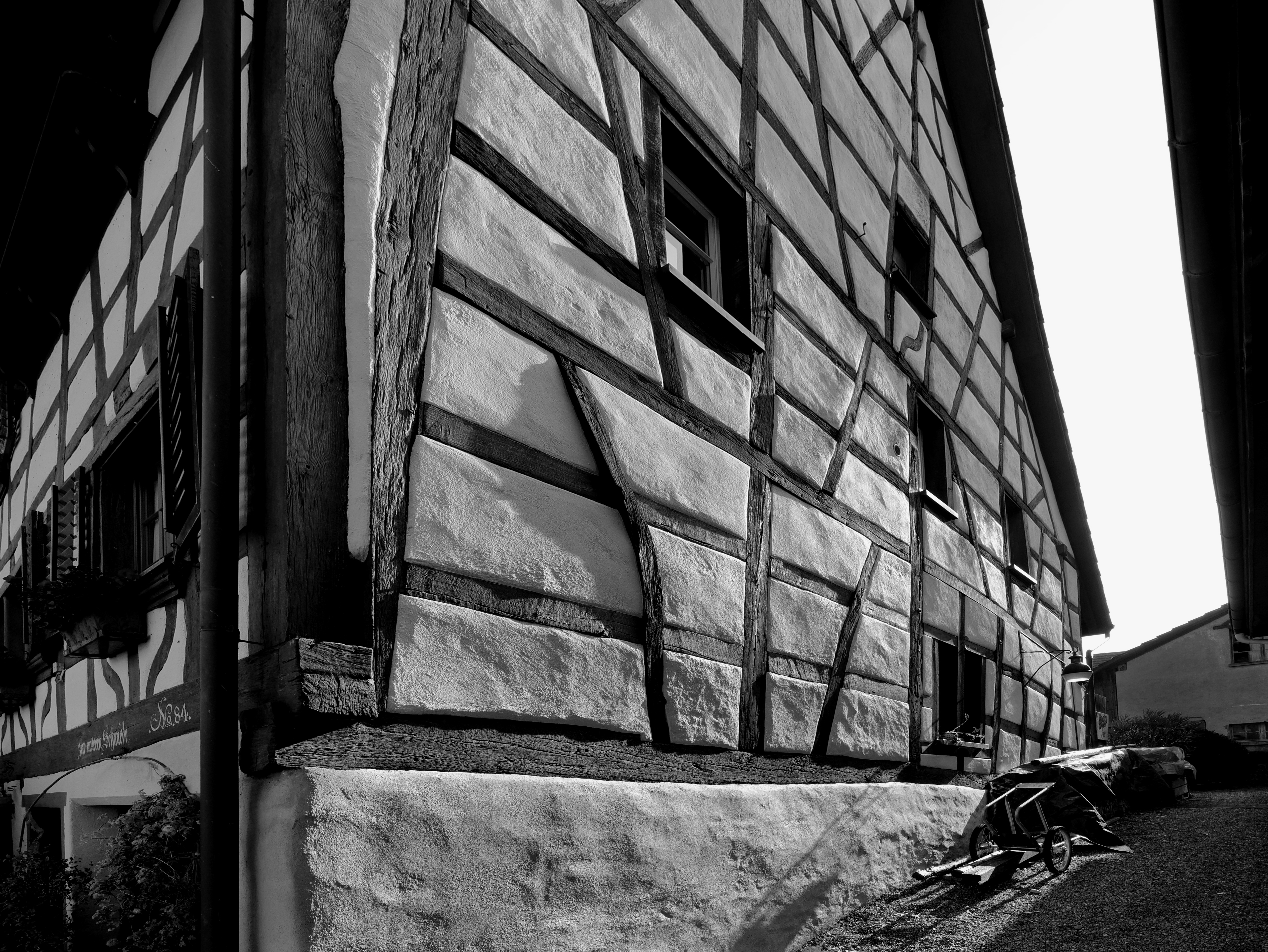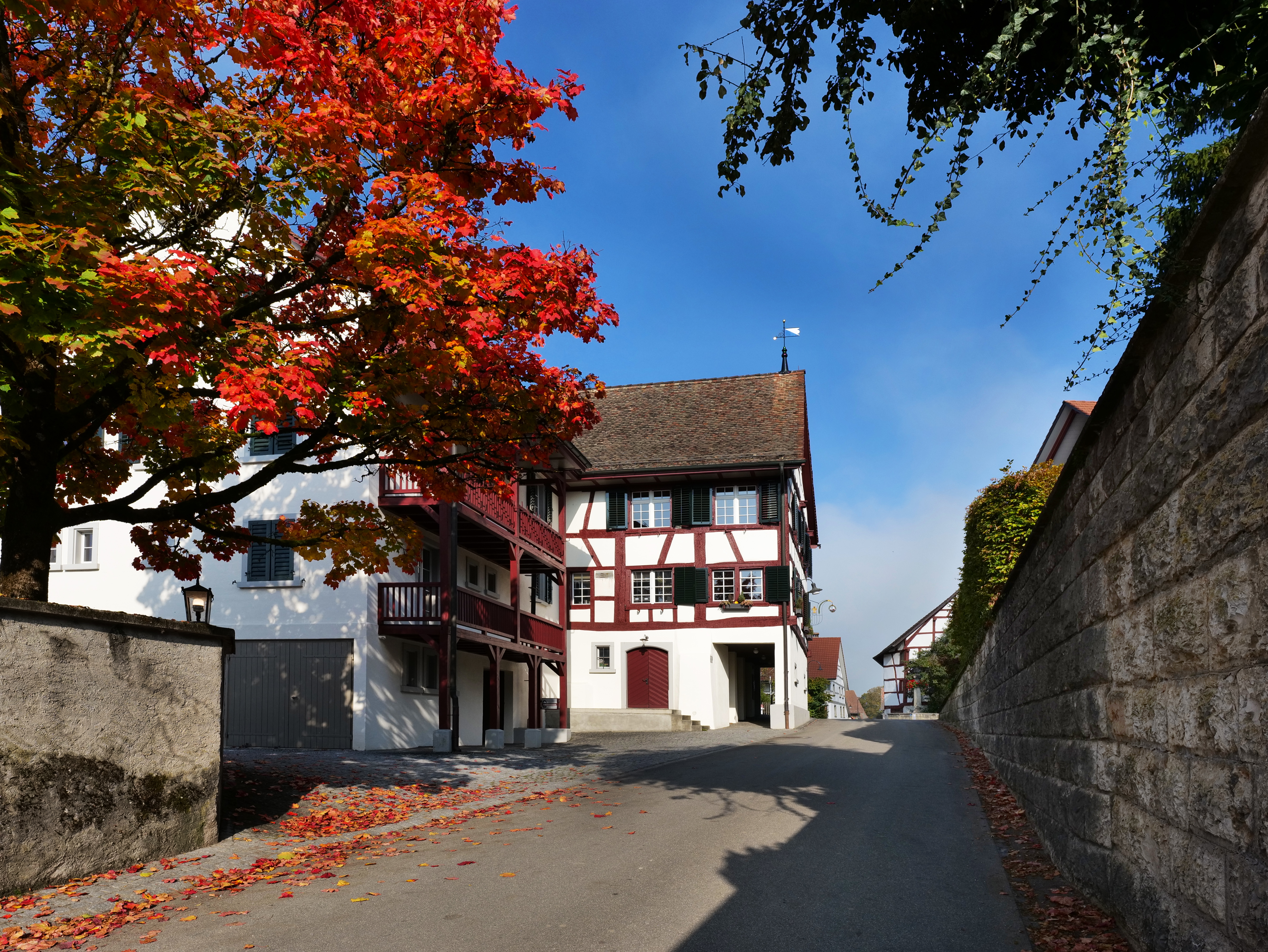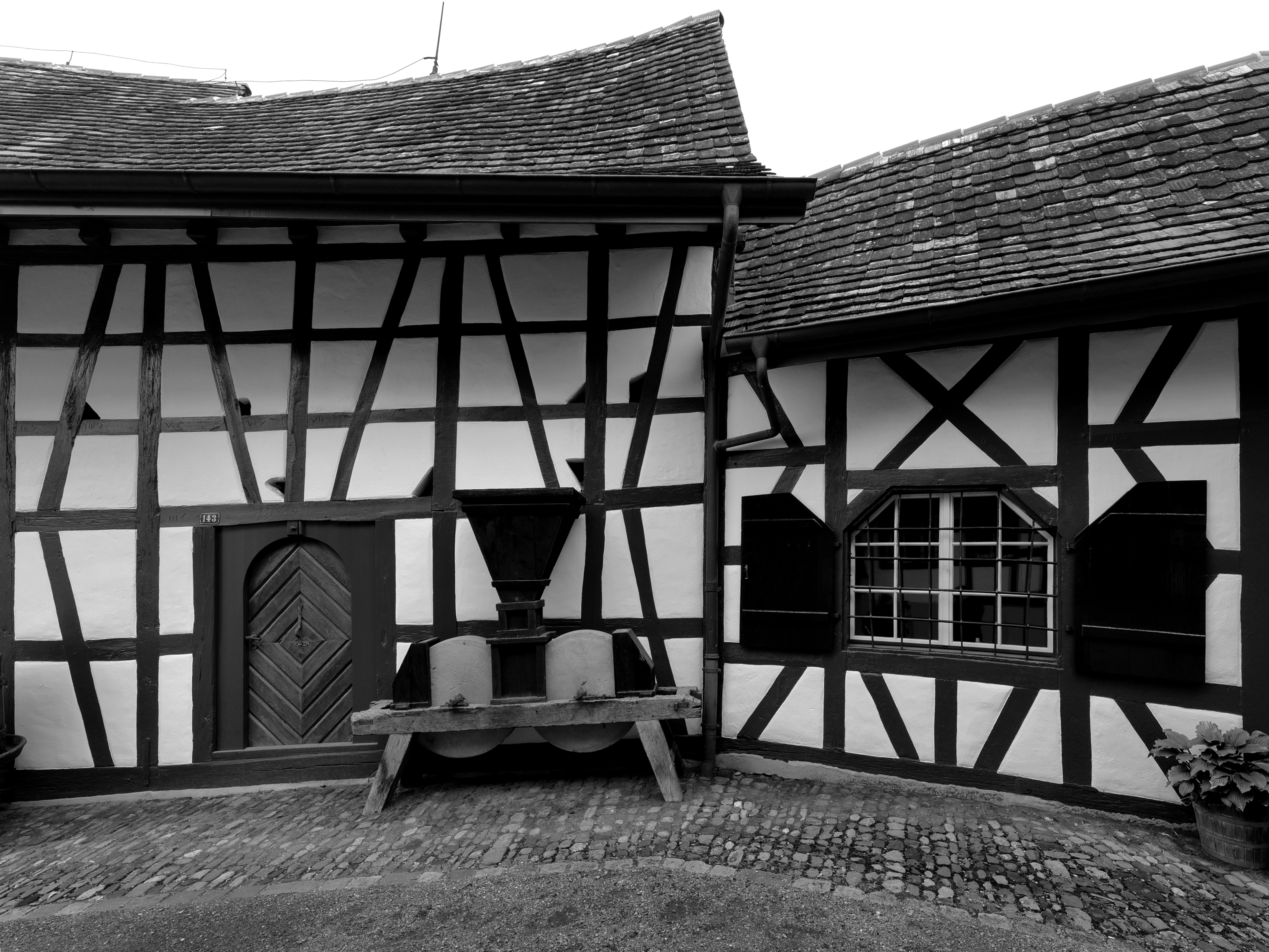 Half-timbered settlement from the 16th to 18th centuries in the Zurich wine country in Marthalen. This half-timbered or post-and-beam construction can be traced back to the Middle Ages in this Swiss region.